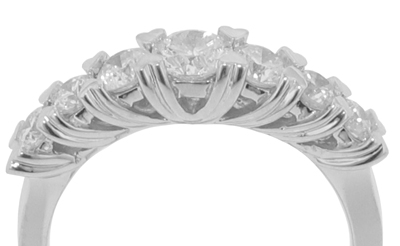 1.75 Ct. TW Ladies Round Cut Diamond Wedding Band: Tell her “I love you” on more than just words when you meet on your special day, say it with a lasting expression of your love and devotion with a little help from our captivating diamond wedding band. Sculpted heart shaped prongs proudly display seven stunning diamonds all with phenomenal white F color and sparkling clean to the eye VS-2 clarity they shine as bright as her eyes when she gazes upon this cute and stylish ring. We make her ring to her precise finger size so it’s ready to wear right out of the box. Making your special day even more special means a lot to us so let our marvelous diamond wedding band part of that day.