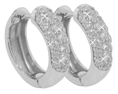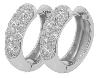 1.25 Ct. TW Round Diamond Huggy Earrings: Fashionable and fun to wear the huggy earring is a must have on every girl’s list, but add some pave diamonds and they’re simply irresistible. These earrings have an amazing sparkle coming from the facets of 1.25 carat total weight of pave set round brilliant diamonds. Each stone is carefully picked for exceptional white F color and magnificently eye clean VS-2 clarity giving off a spectacular shine while on her ears. The 14 karat white gold earrings have locking posts so there’s never a worry about falling out in addition to being comfortable to wear all day long. Give her the gift she won’t forget by calling us today and ordering your pair of diamond huggy earrings.
