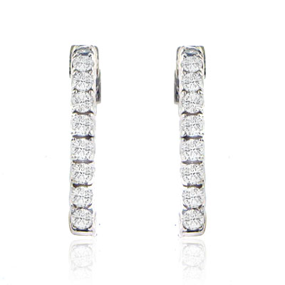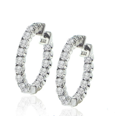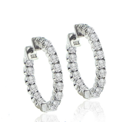 1.70 Ct. TW Round Diamond Inside-Outside Hoop Earrings: These cute hoop/huggie earrings make the perfect addition to any girl’s accessory jewelry collection and they’re ready to surprise her with our wholesale direct low prices. Set in the popular inside/outside pattern we’ve put 1.70 carat total weight in carefully matched G white color and immaculately clean to the eye VS-2 SI-1 clarity diamonds all with magnificent fire and sparkle into these fashionable and fun to wear 14 karat white gold earrings. They might sound expensive but we’re centrally located in the world’s largest wholesale diamond market in New York City and we want to pass these incredible savings on to you. Call or write us now with any questions or offers on these enticing hoop huggie earrings.