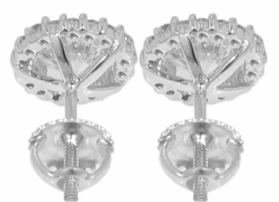 2.18 Ct. TW Round Diamond Stud Earrings in Halo Screw Back Mounts